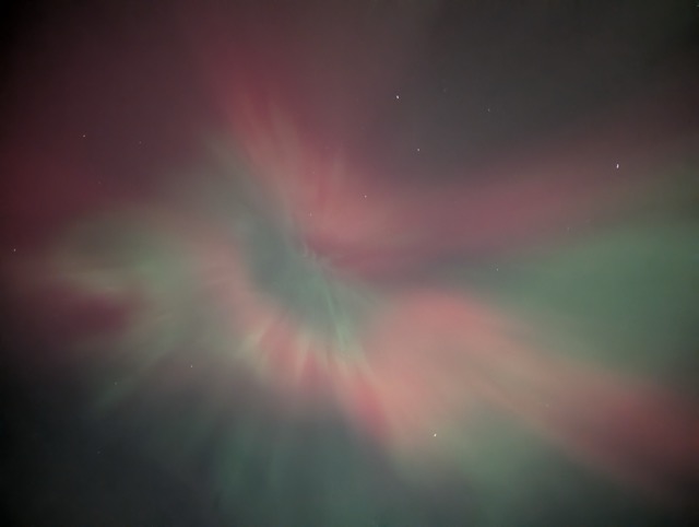 第一次看到這麼多顏色的極光,紅色翅膀的鳳凰在頭頂舞動,壯觀極了!重點是離家只要15分鐘😃